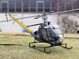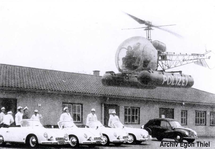 MBB Bo 105 C des Bundesgrenzschutzes in den 1980ern. Später wurden alle Maschinen dieses Musters in Orange umlackiert und versahen ihren Dienst bei der Luftrettung. Die Vorgängermaschinen der CBS-Version waren kürzer. Auf Fotos erkennt man sie leicht an dem fehlenden seitlichem Dreiecksfenster.