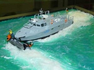 Das Modell (Maßstab 1/87) ist ein Umbau aus einem Resinmodell eines Verkehrsbootes der Fa. Artmaster.